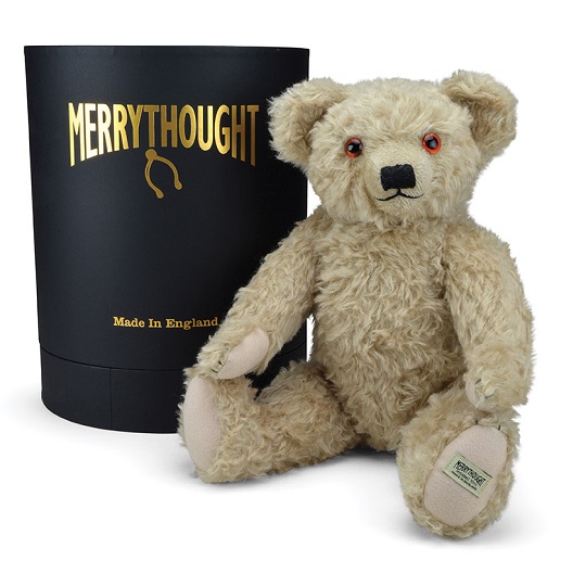 From August 2017 to July 2018, an original 1930s ‘Merrythought Bear’ proudly appeared upon an official Royal Mail 1st Class Stamp, as part of a special collection celebrating classic British toys. To commemorate this achievement, Merrythought has created an authentic replica of the iconic bear featured on the stamp – one of the oldest in our archives. What’s more, he is presented alongside a certificate incorporating the rare stamp, which is no longer available to purchase from the Royal Mail and is a real must-have for the Merrythought enthusiast. The bear features traditional glass eyes and a characterful, wise expression, whilst vintage-effect mohair plush gives the look and feel of a worldly bear who has been cherished for generations.